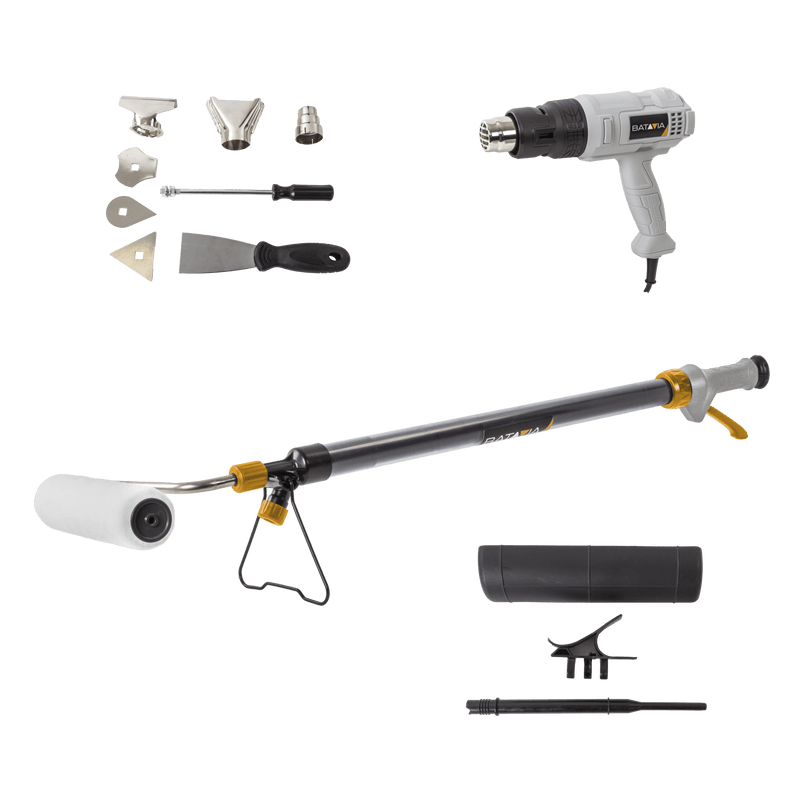 Bringen Sie Ihre Heimwerkerprojekte auf die nächste Stufe mit dem Batavia Renovierungsset - einer intelligenten und praktischen Kombination aus einem Farbroller mit integriertem Tank und einer leistungsstarken 1800-W-Heißluftpistole. Egal, ob Sie Ihre Wände auffrischen oder alte Farbe abbeizen wollen, mit diesem Set haben Sie die Werkzeuge, um dies schnell, sauber und effizient zu tun.