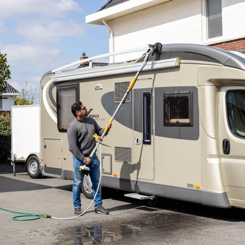 El alargador de 80 cm para el Twin Brush 18V - Cepillo Rotativo de Limpieza de Batería sin Escobillas es el accesorio perfecto para limpiar zonas altas y de difícil acceso. Con esta extensión, su Cepillo Doble se extiende hasta 240 cm, permitiéndole limpiar a más de 3 metros de altura desde el suelo-sin necesidad de una escalera. Tanto si friega paredes, tejados u otras superficies elevadas, esta extensión le garantiza una limpieza segura y sin esfuerzo.