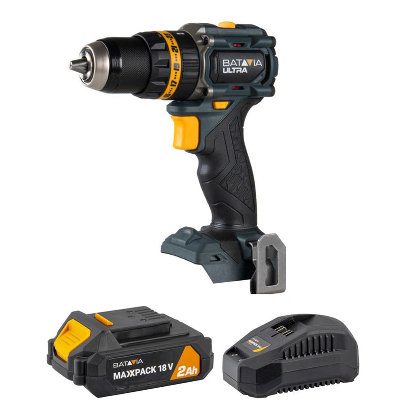 Parte della piattaforma di batterie Maxxpack 18V, questo trapano combinato utilizza la stessa batteria e lo stesso caricabatterie di oltre 60 altri utensili Batavia. Ciò significa meno ingombro, meno costi e più versatilità per l'intera collezione di utensili.