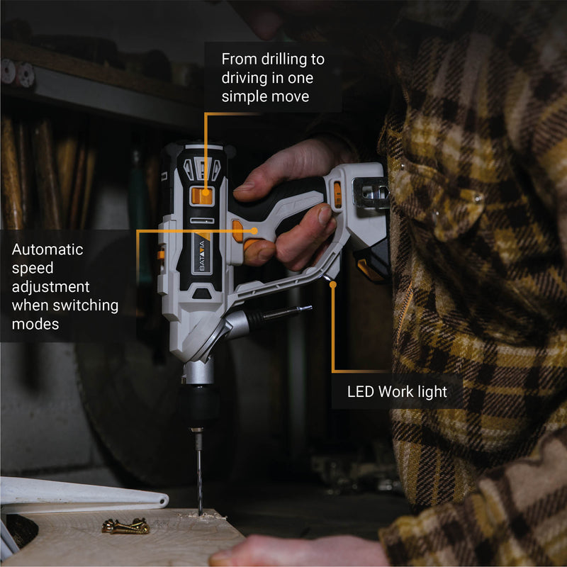 - Innovazione del doppio mandrino - Per passare facilmente dal trapano all'avvitatore basta una sola mano.