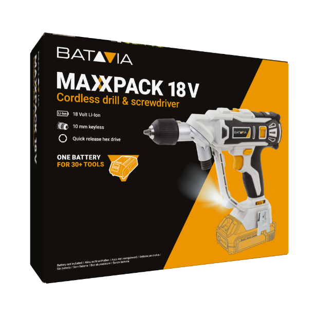 Come parte della piattaforma Maxxpack 18V di Batavia, il trapano Twin è compatibile con un'unica batteria e caricabatterie che alimenta oltre 60 utensili diversi, da trapani e seghe a pulitrici e levigatrici. Semplificate il vostro kit di utensili e ampliate le vostre capacità.