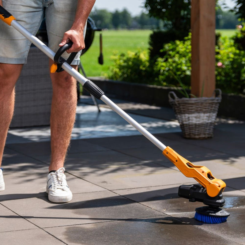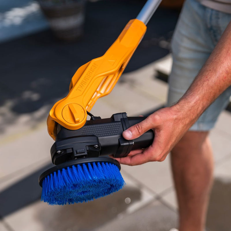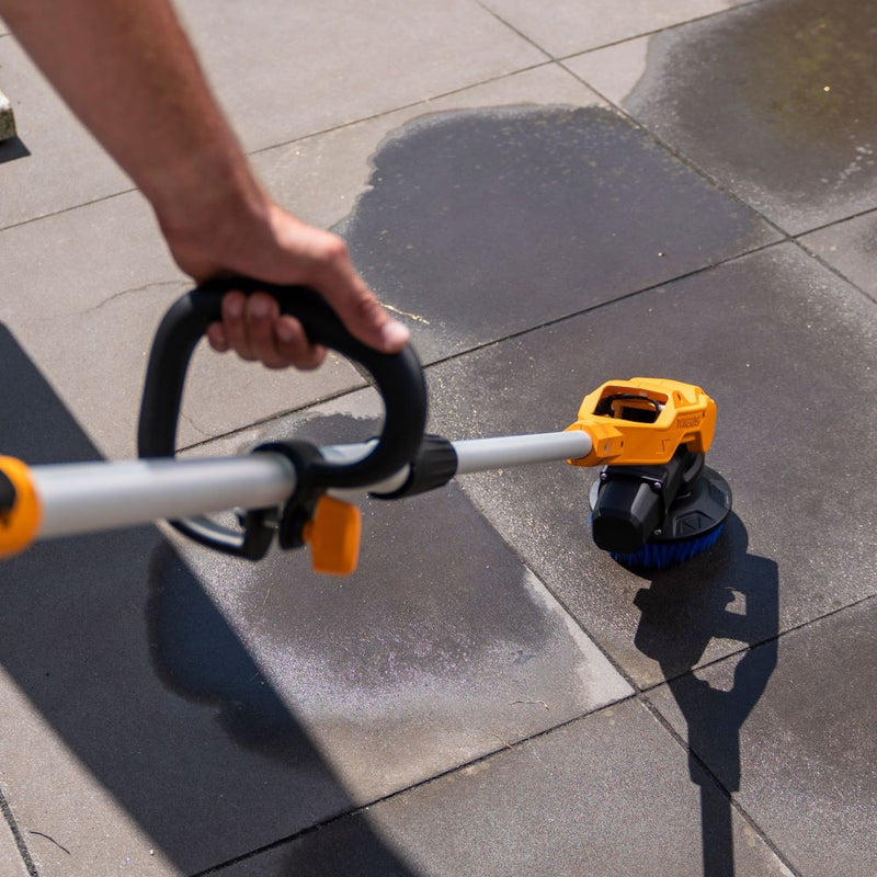 Equipped with powerful 12V performance and counter-rotating brushes, the Twin Brush makes short work of dirt on both horizontal and vertical surfaces. Its unique dual-brush action ensures thorough cleaning while preventing splashing, making it perfect for patios, driveways, garden furniture, and even vehicles.